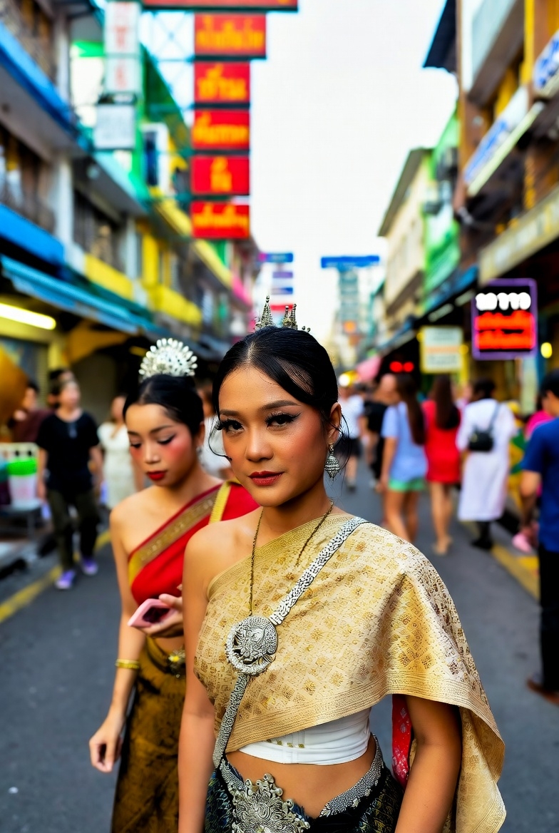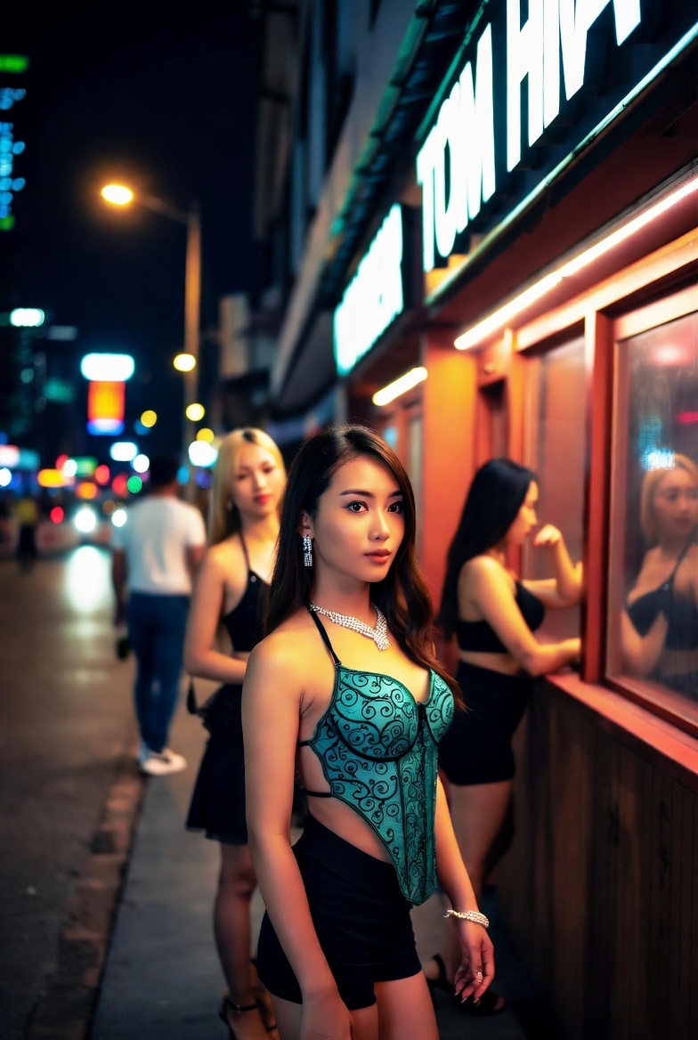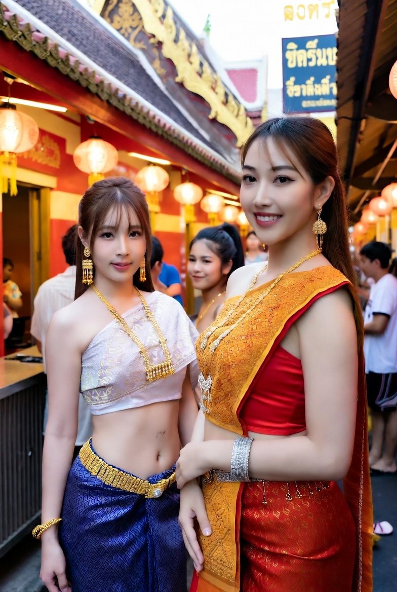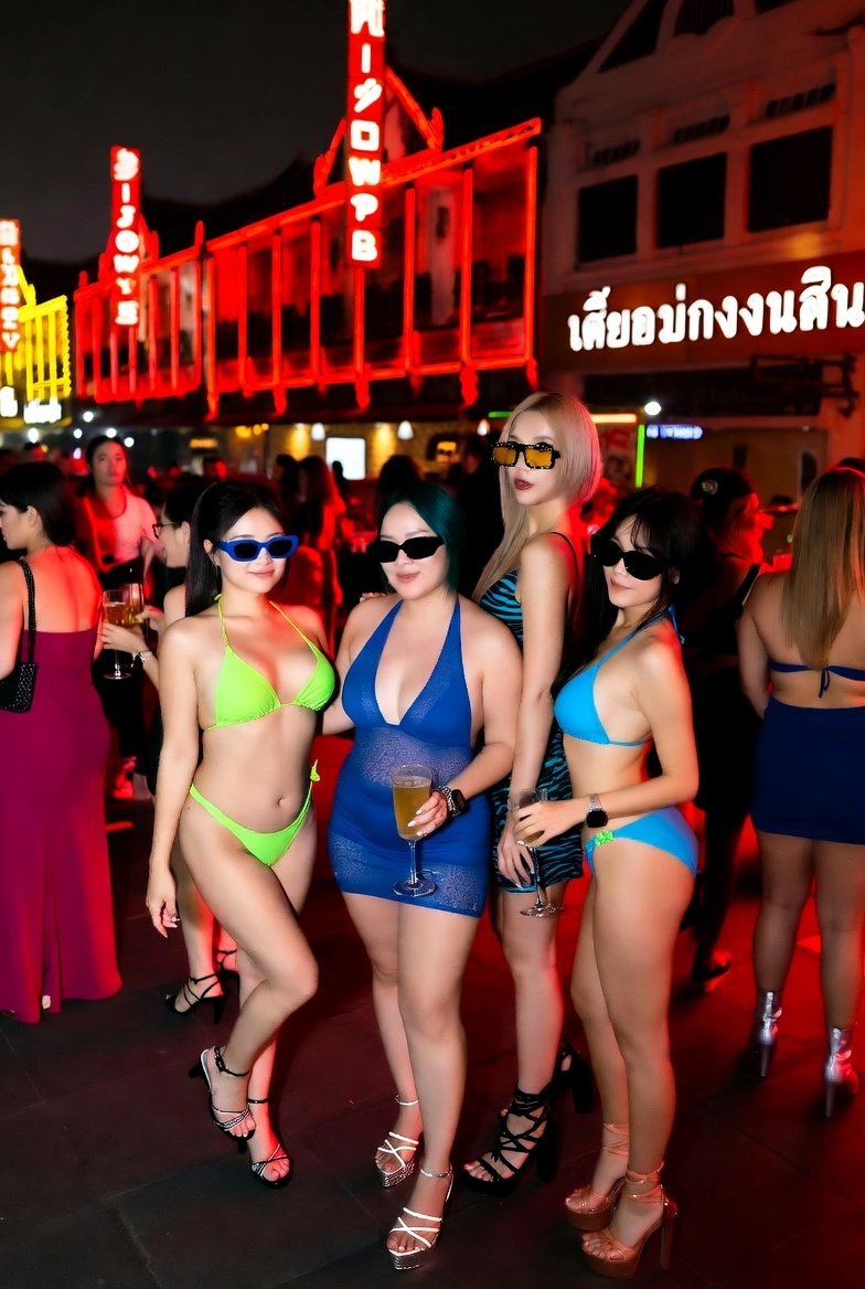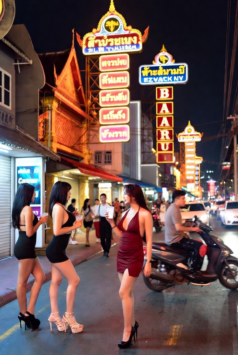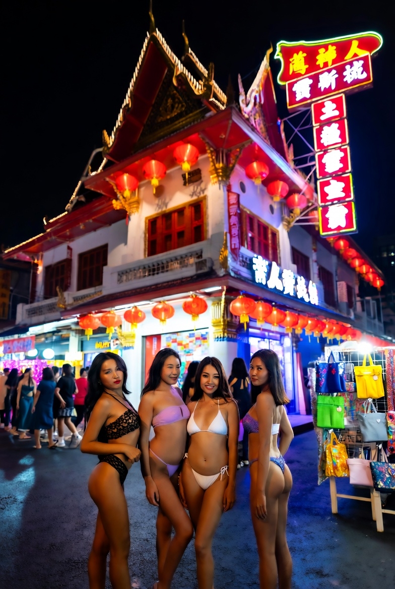 Notice that many of the bar ladies in Thailand do not wear bikinis outside the bars, their is alot of Chinese stuff in the photos, they are using traditional dresses to be woke probably. One photo has a nipple slip. Many of them are the traditional beauty for Thais, tall and white skin.